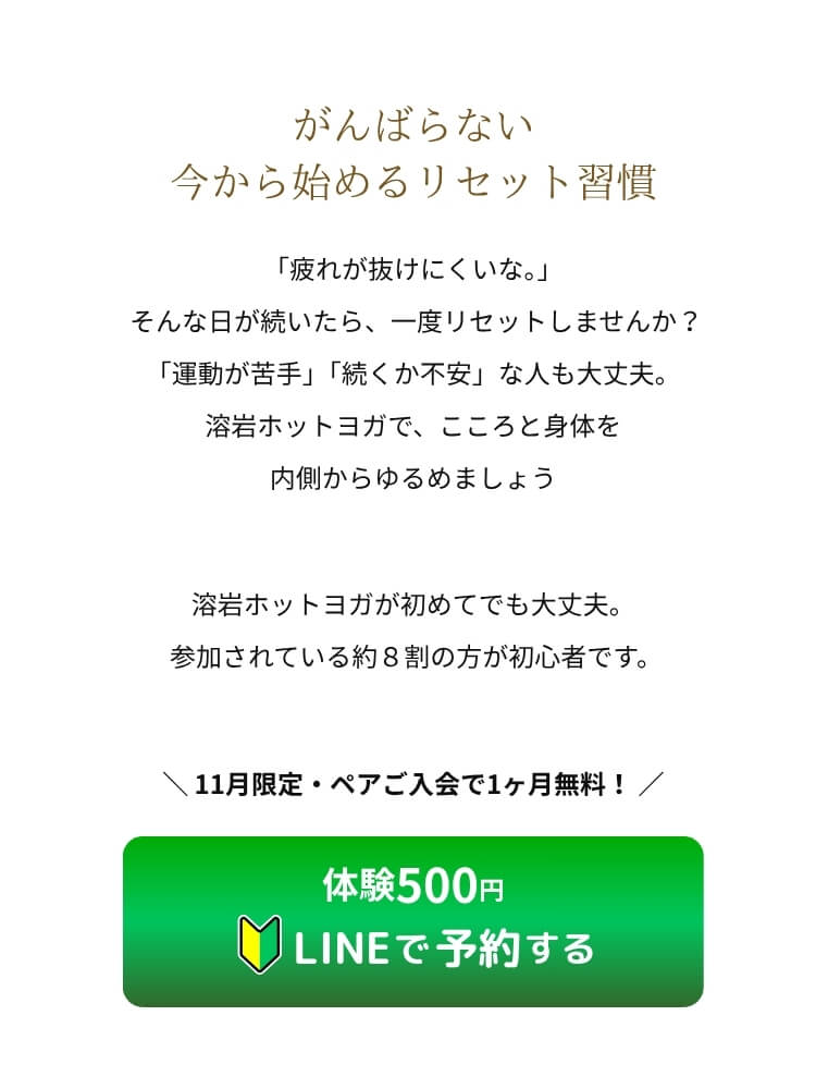 さらに体を芯から温める溶岩石の上で行うヨガを「溶岩ホットヨガ」と呼びます。